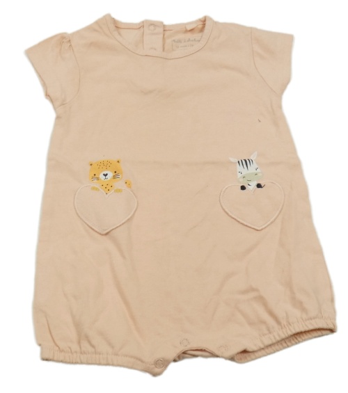 Lososový kraťasový overal se zvířaty a srdíčky