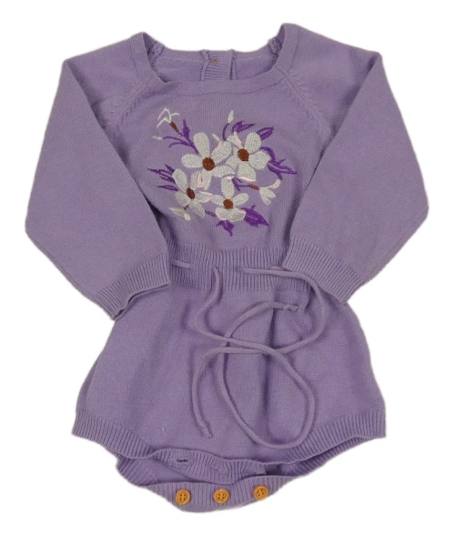 Fialový svetrový kraťasový overal s kytičkami
