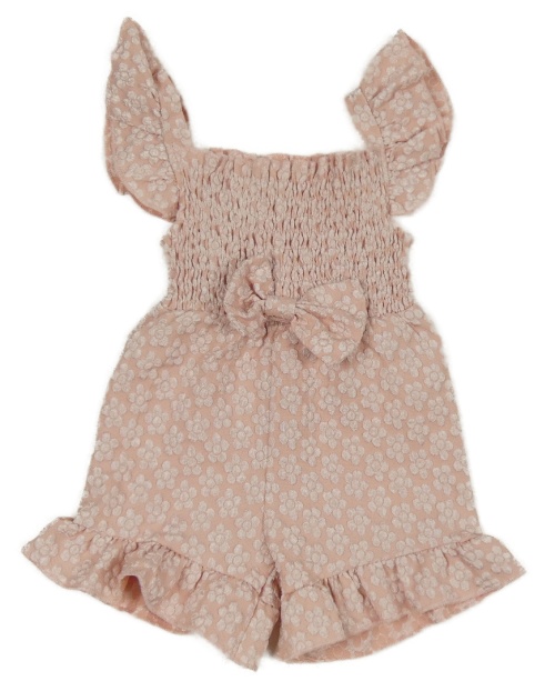 Světlerůžový kraťasový zabičkový overal s mašlí