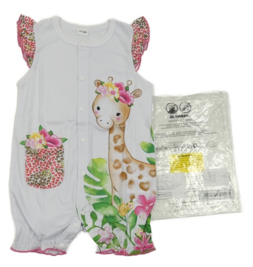 Nové - Bílo-barevný kraťasový overal s žirafou