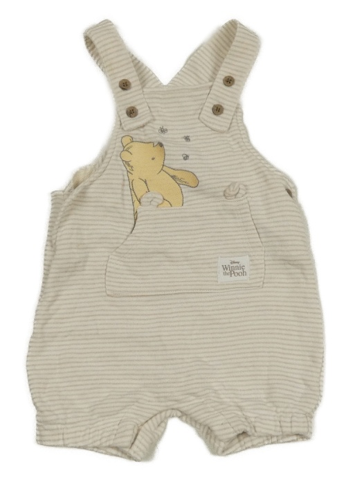 • Smetanovo-světlehnědé pruhované teplákové laclové kraťasy s Pú a kapsou Tu