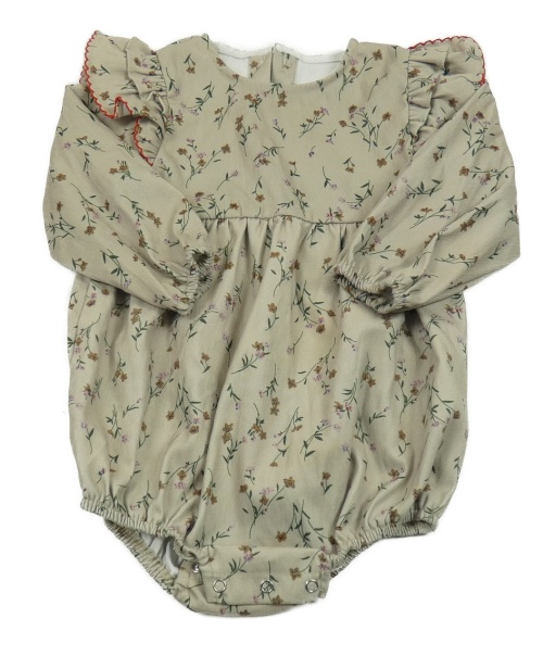 Světlekhaki kraťasový overal s kytičkami a volánky ministory