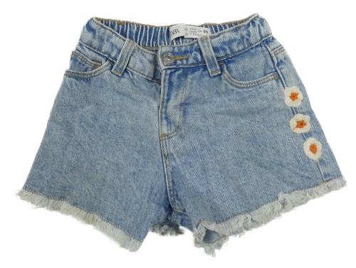 Světlemodré melírované riflové kraťasy s kvítky Zara