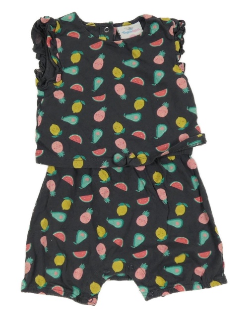 Tmavošedý kraťasový overal s ovocem a melouny a volánky Topomini