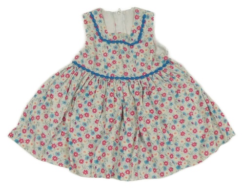 Světlešedo-růžovo-žluto-modré květované manšestrové šaty