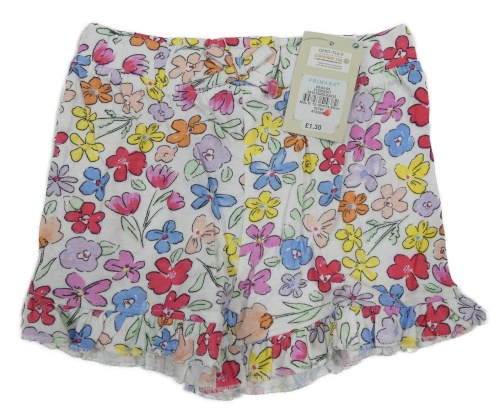Nové - bílé kraťasy s barevnými kytičkami a mašlí a volánky PRIMARK