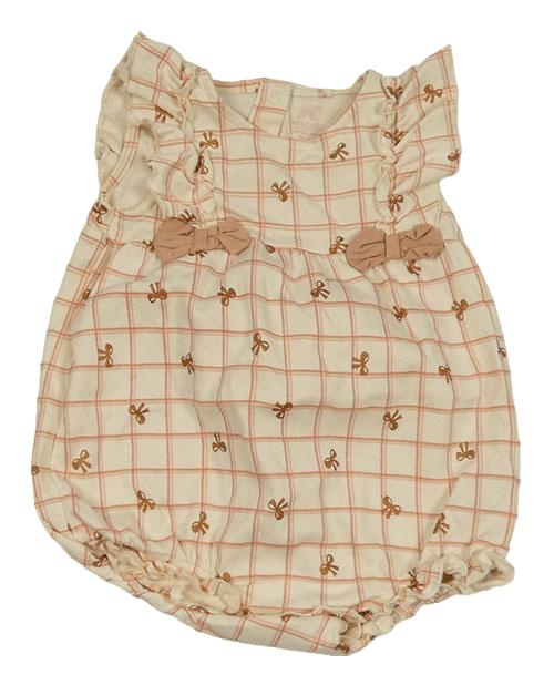 Béžovo-růžový kostkovaný bavlněný kraťasový overal s mašlemi Next