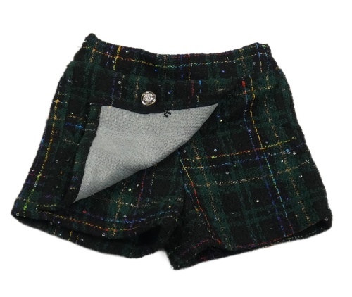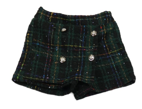 Zeleno-černé kostkované sukňové kraťasy s knoflíčky