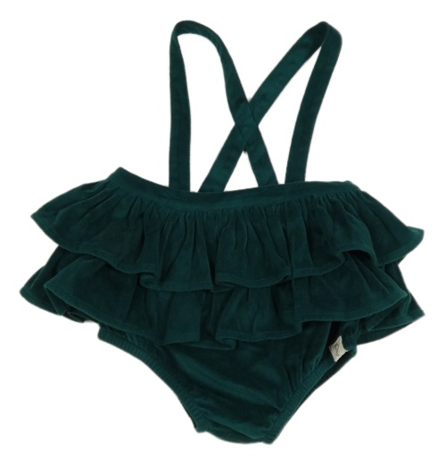 Smaragdové plyšové kraťasy s volánky a kšandami George