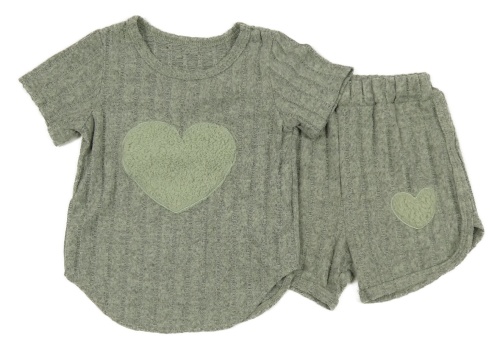 2 set - khaki žebrované úpletové tričko se srdcem + kraťasy