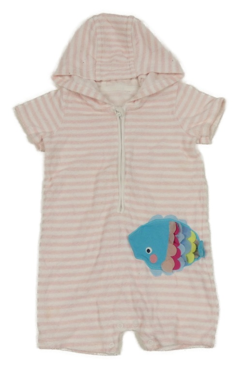 • Světlerůžovo-bílý pruhovaný froté kraťasový overal s rybou a kapucí Tu