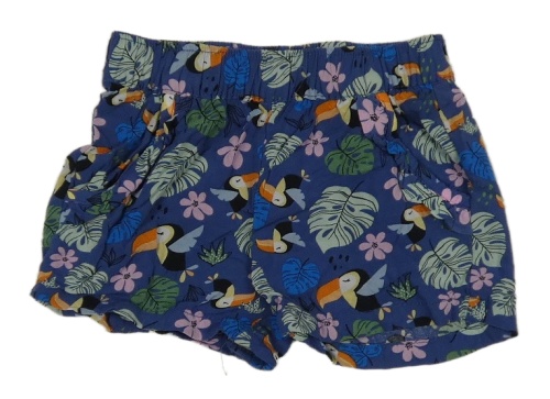 Tmavomodré kraťasy s tukany a lístečky a volánky POCOPIANO