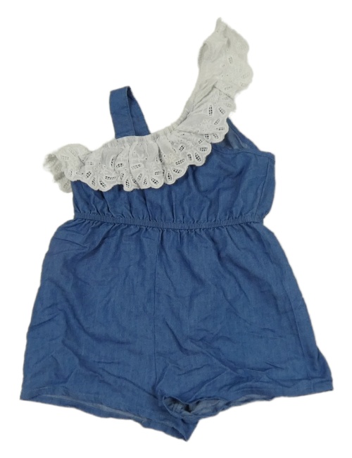 Modrý kraťasový overal riflového vzhledu s volánky PatPat