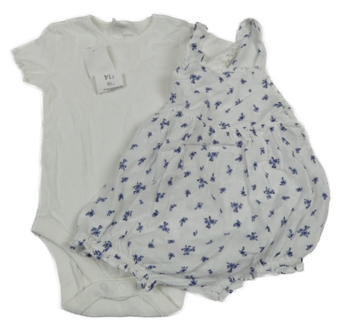 • Nové - 2Set - Bílé mušelínové laclové kraťasy s kytičkami + žebrované body F&F