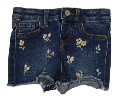 Tmavomodré riflové kraťasy s výšivkami květin
