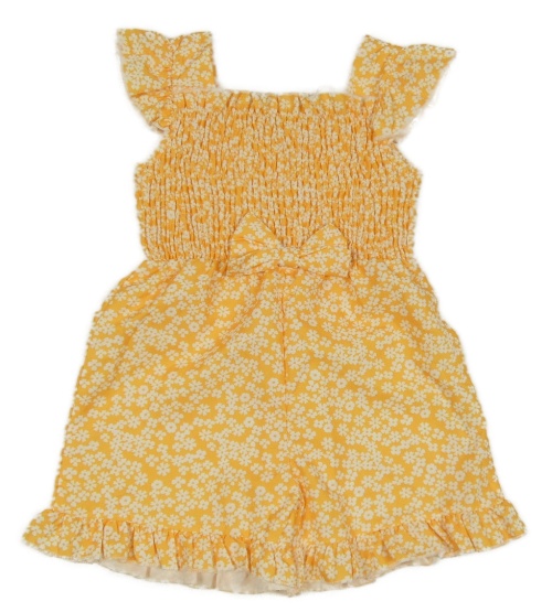Žluto-bílý květovaný kraťasový overal se žabičkováním