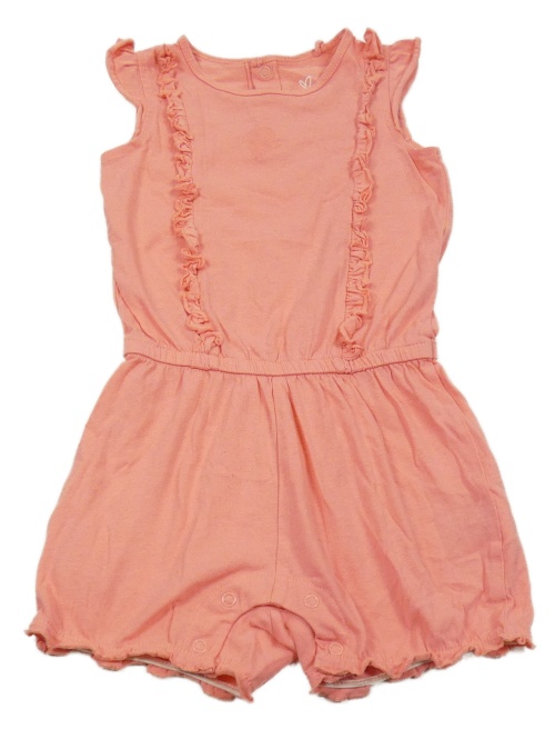 Korálový bavlněný kraťasový overal s volány Lupilu