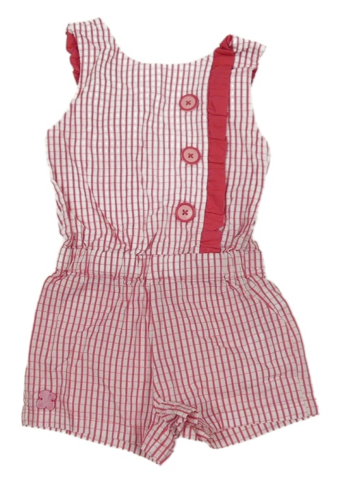 Bílo-růžový kostkovaný kraťasový overal s knoflíky