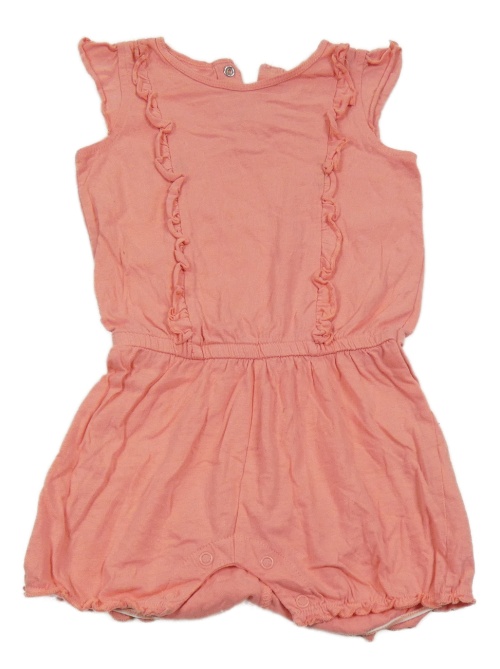 Růžový bavlněný kraťasový overal s volánky Lupilu