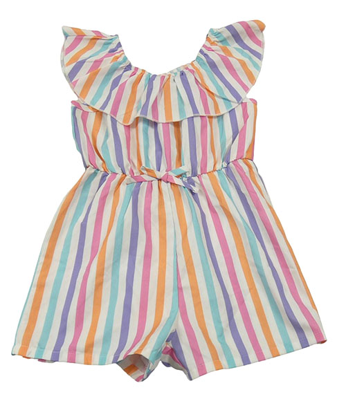 Bílo-barevný pruhovaný kraťasový overal s volánem PatPat
