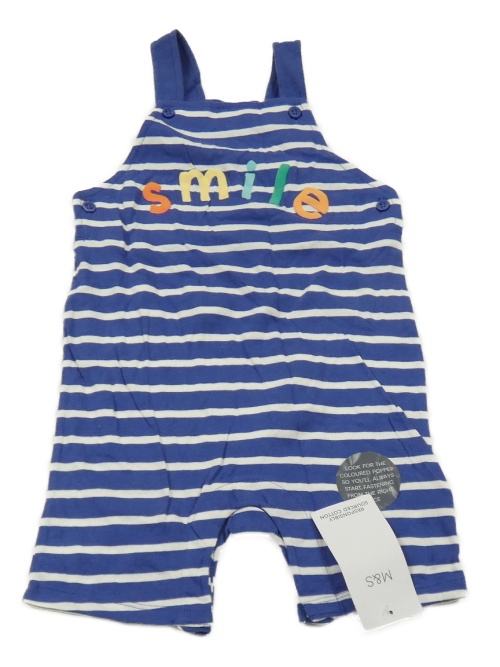 Nové - Modro-bílý pruhovaný bavlněný kraťasový overal s nápisem M&S