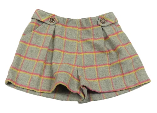 Šedo-růžovo-žluté kostkované vlněné sukňové kraťasy Tu