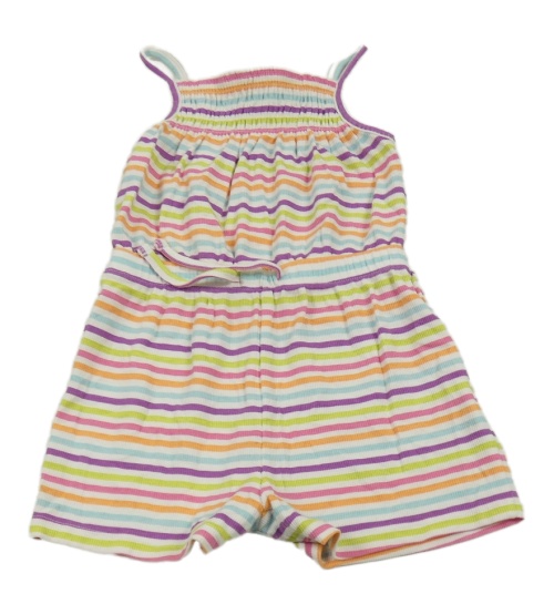 Bílo-barevný pruhovaný žebrovaný kraťasový overal Tu