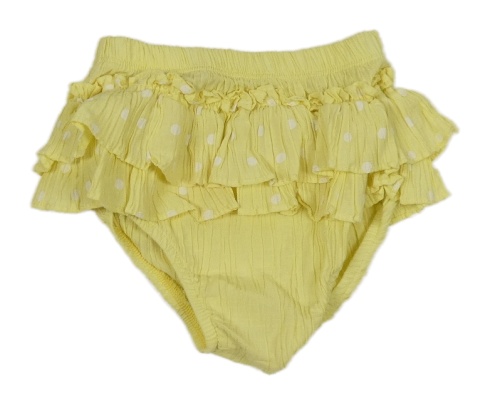 Žluté plátěné kraťasy s volánky a puntíky