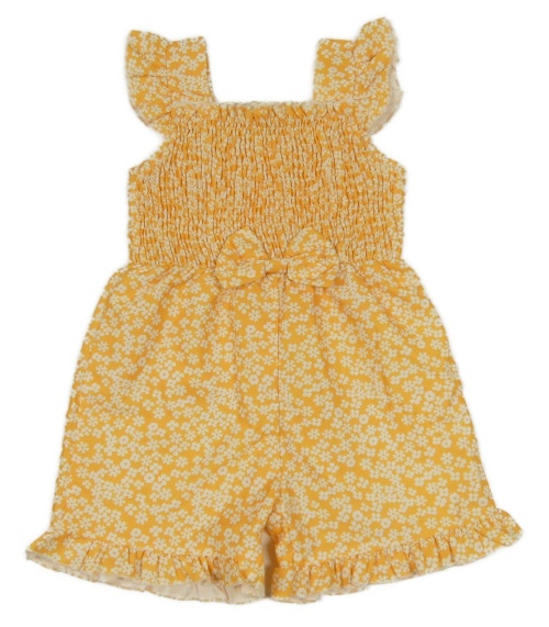 Oranžovo-bílý květovaný kraťasový overal s mašlí