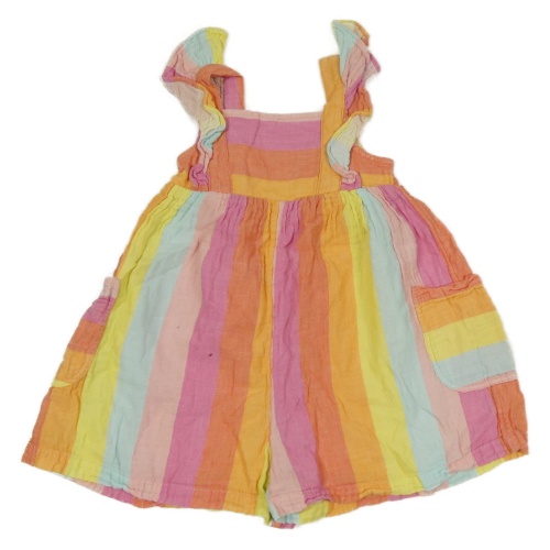 Pruhovaný cargo kraťasový overal s volánky Nutmeg