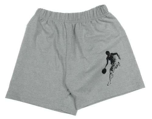 • Šedé melírované sportovní kraťasy s basketbalistou