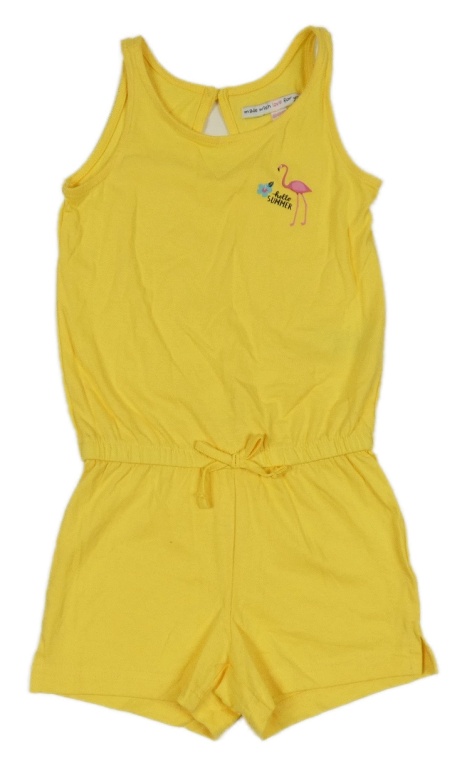 Žlutý bavlněný kraťasový overal s plameňákem Pocopiano