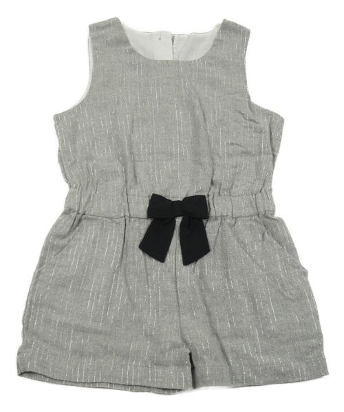 Šedo-stříbrný pruhovaný kraťasový overal s mašlí Matalan