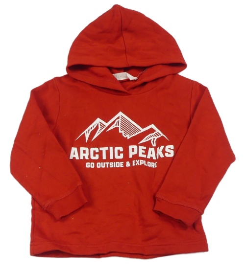 Červená mikina s horami a nápisy a kapucí H&M