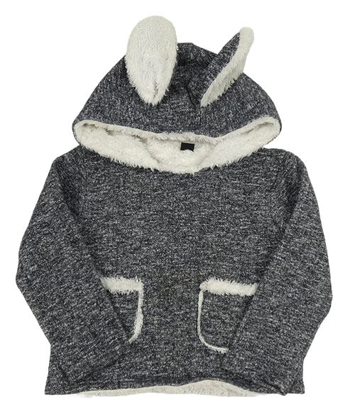 Tmavomodro-bílá melírovaná pletená zateplená mikina s kapucí s oušky hy five