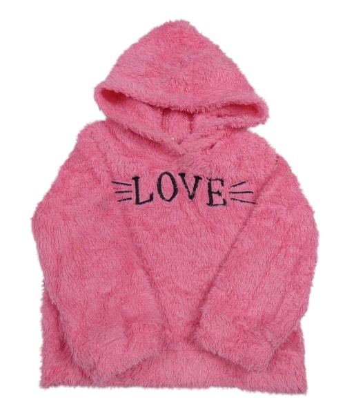 Neonově růžová chlupatá mikina s nápisem a kapucí Shein