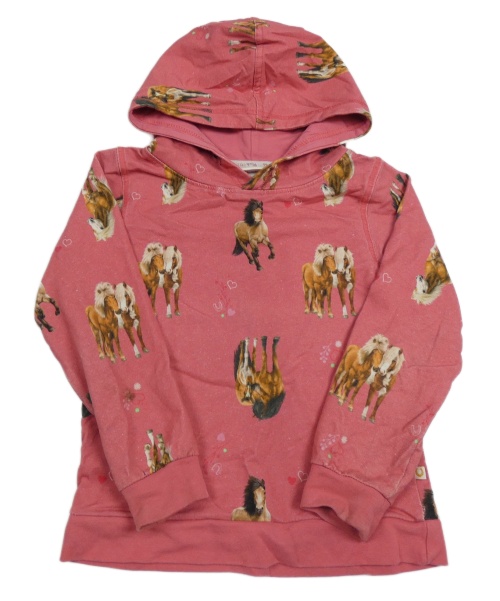 Jahodová melírovaná mikina s koníky a srdíčky a kapucí