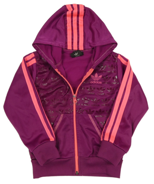 Fuchsinová sportovní propínací mikina s logem a kapucí - Adidas