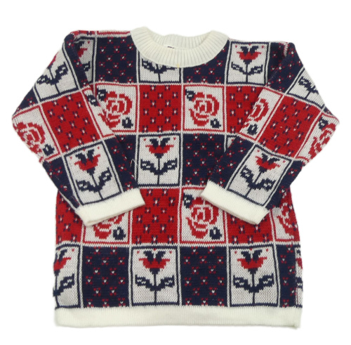 Tmavomodro-červený kostkovaný vzorovaný svetr