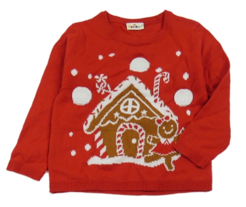 Červený svetr s perníkovou chaloupkou Kuniboo