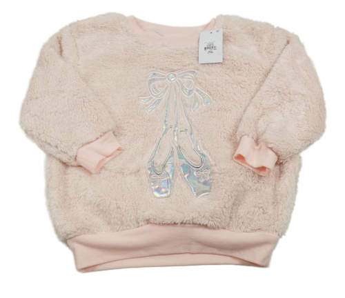 Nové - Světlerůžová chlupatá třpytivá mikina s piškoty Primark