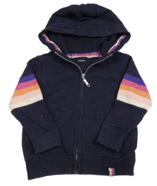 Tmavomodrá propínací mikina s pruhy na rukávech a kapucí Next