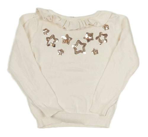 Smetanový svetr se zlatými hvězdičkami z flitrů a volánkem Kiki&Koko