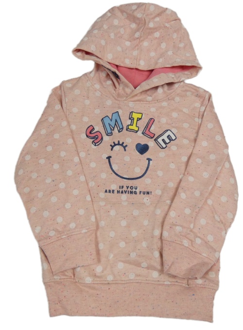 Světlerůžová melírovaná puntíkatá mikina se smajlíkem a kapsou a kapucí Kiki&Koko