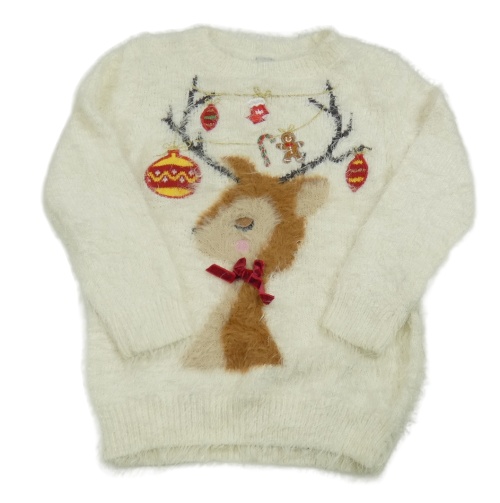 Smetanový chlupatý dlouhý svetr se sobem Tu