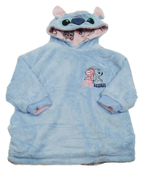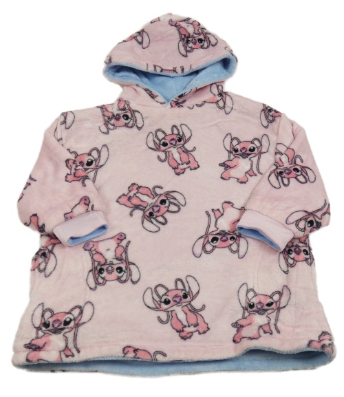 Světlerůžová chlupatá oboustranná oversize mikina se Stichem a kapucí