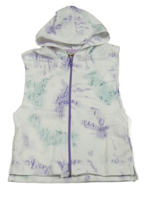 Bílo-lila-zelená propínací vesta s nápisy a kapucí