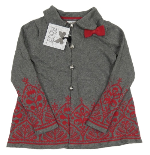 Nové - Tmavošedý propínací dlouhý svetr se vzorem a mašlí