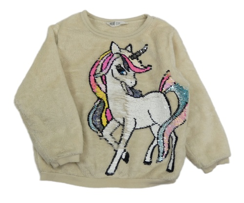 Béžová chlupatá mikina s jednorožcem z překlápěcích flitrů H&M