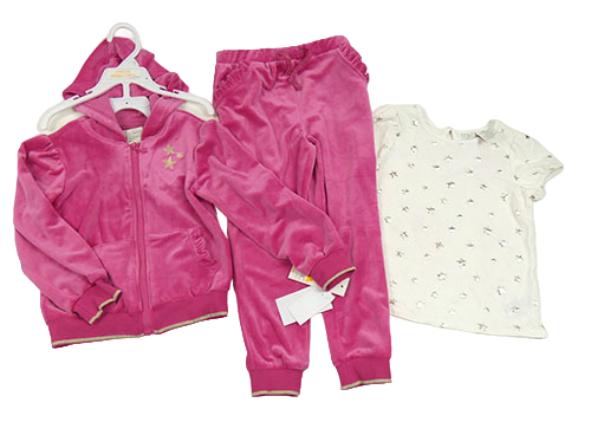 • Nové - 3set - Fuchsiová plyšová propínací mikina s hvězdami a kapucí + tepláky + bílé triko s hvězdami